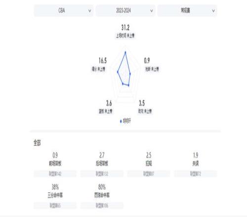 拿顶薪的首个赛季,胡明轩投篮命中率下滑5个百分点左右。本赛季截至第11轮,他场均只有8.8分,投篮命中率低至31.6%,三分命中率连三成都不到,仅为23.6%。